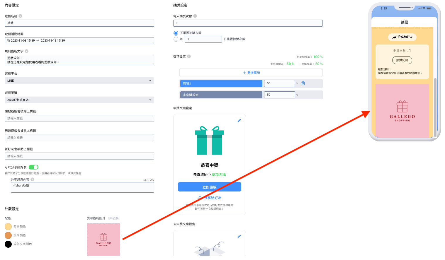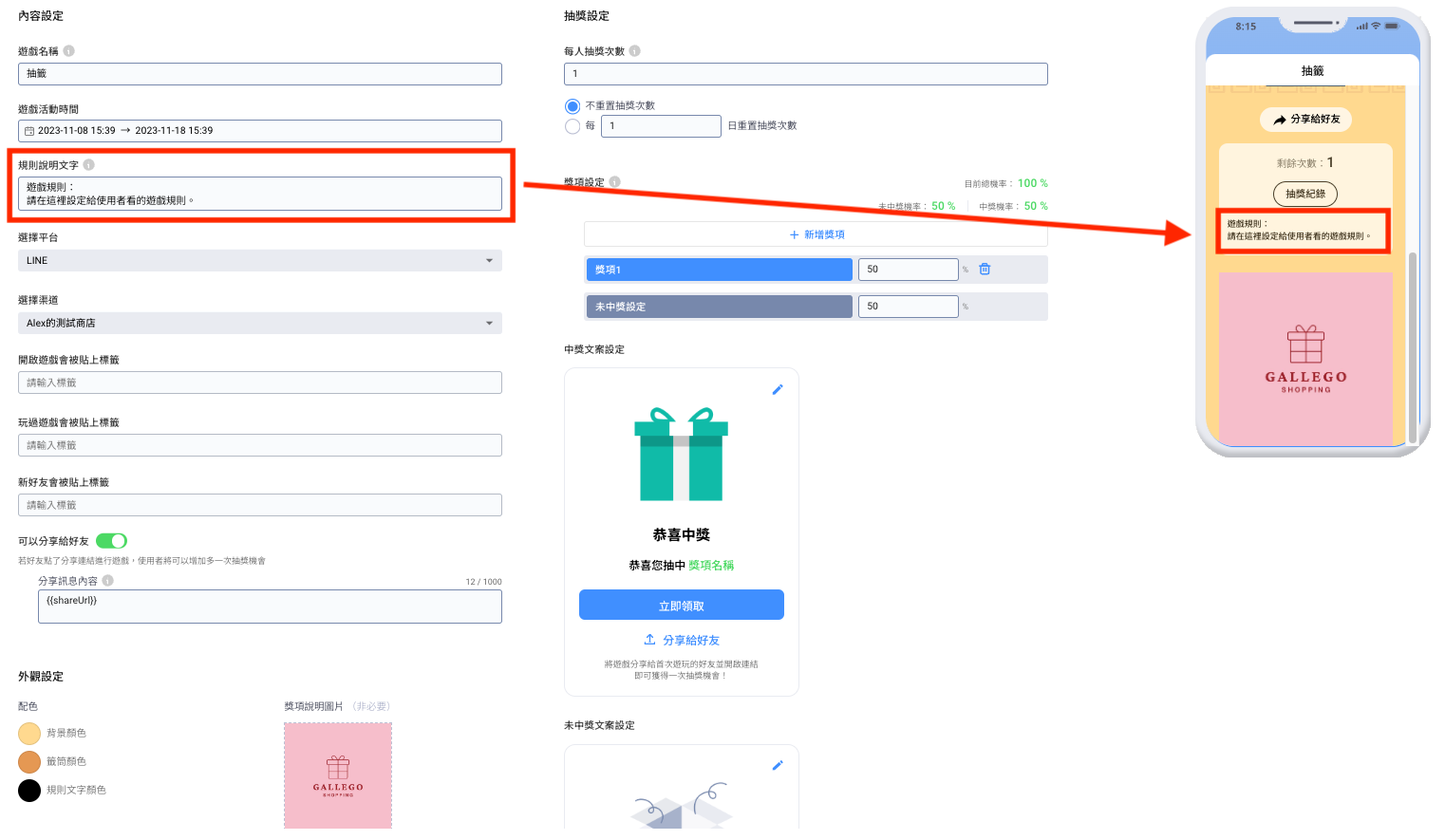 #### 3. 中獎文案設定