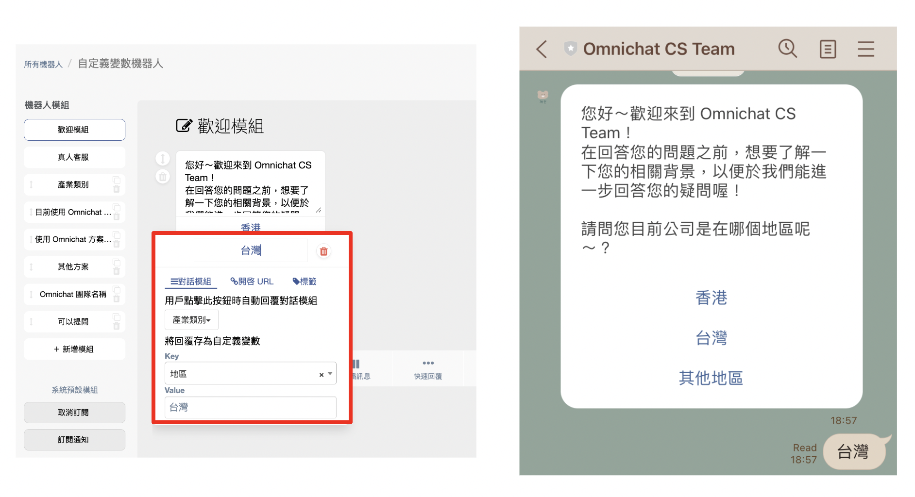 當消費者選擇點擊按鈕「台灣」這個選項，會在「*地區*」這個欄位內自動代入「*台灣*」的資料。