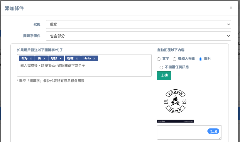 （關鍵字自動回覆設定請參考[設定自動回覆條件及內容](#bu-zhou-4-she-ding-zi-dong-hui-fu-tiao-jian-ji-nei-rong))