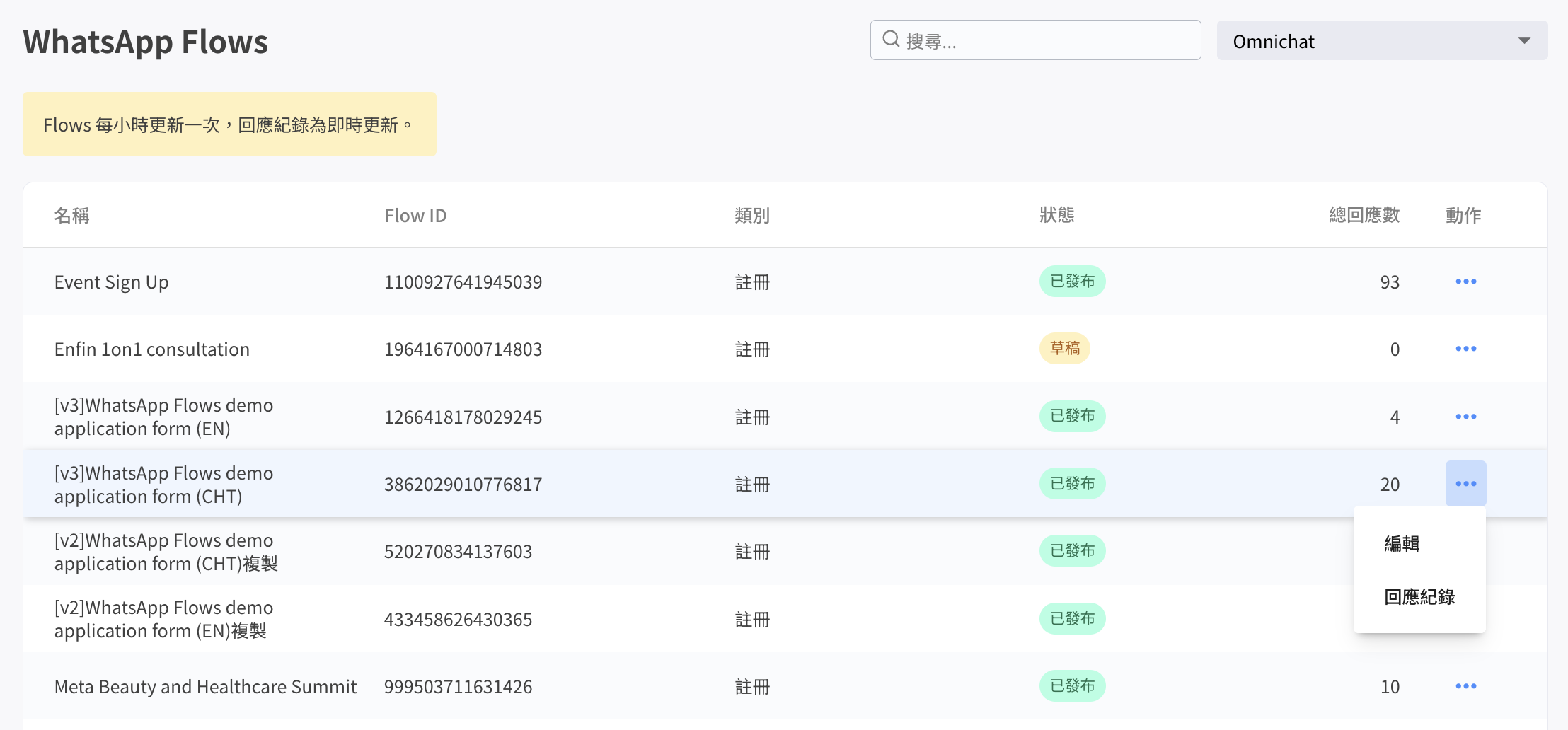 ### **步驟 2：於 Omnichat 平台查看 Flow 清單**