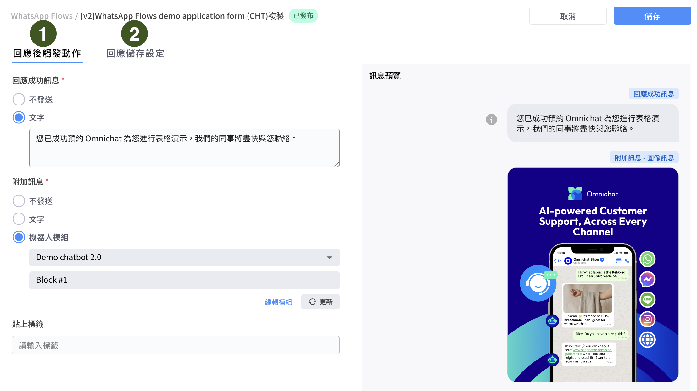 * 編輯：編輯客人回應 Flow 後的觸發動作與其他設定