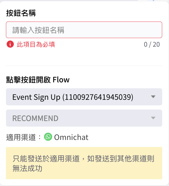 * **按鈕名稱**：必填，最多 20 字（一個中文字視為 3 字元）