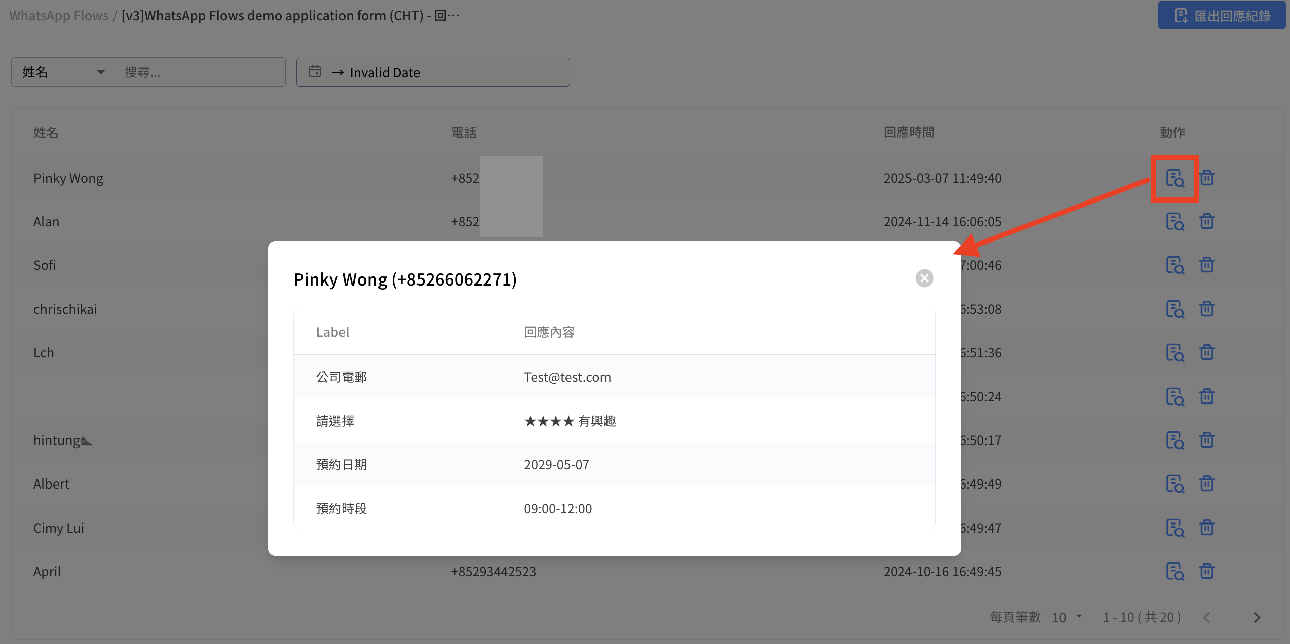* 查看回應紀錄：查看Flow的回應紀錄