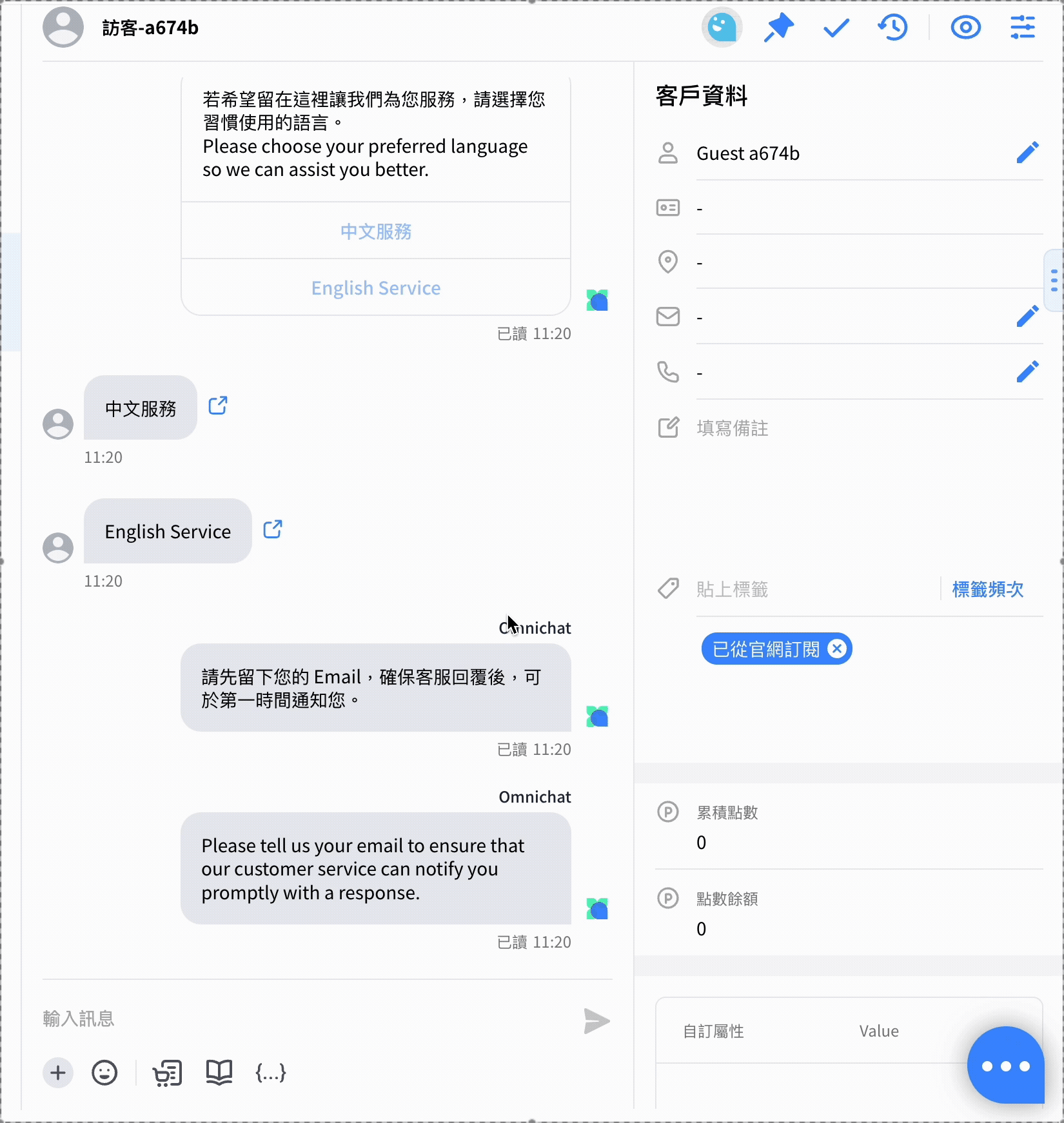 * 輸入完畢按 「Enter」 鍵或點擊下方列出的現有標籤，可以為客戶貼上此標籤