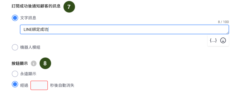 7\. **設定 「 綁定成功後通知顧客的訊息 」**