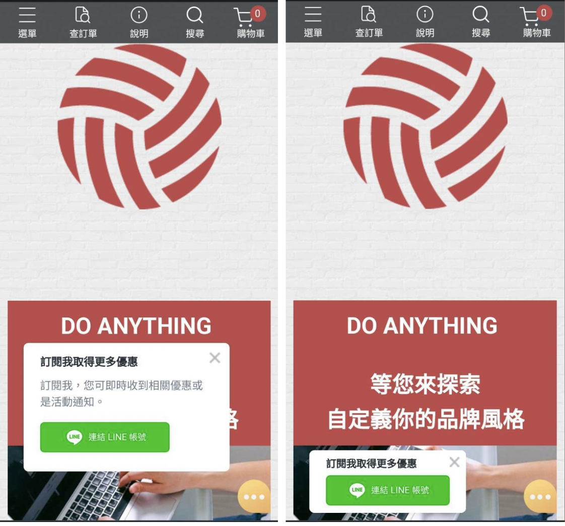2. 但是如果消費者已先綁定了第一個跳出來的官網綁定，下次再以同個瀏覽器開啟網頁時，會自動跳出第二個您啟用的官網綁定插件。