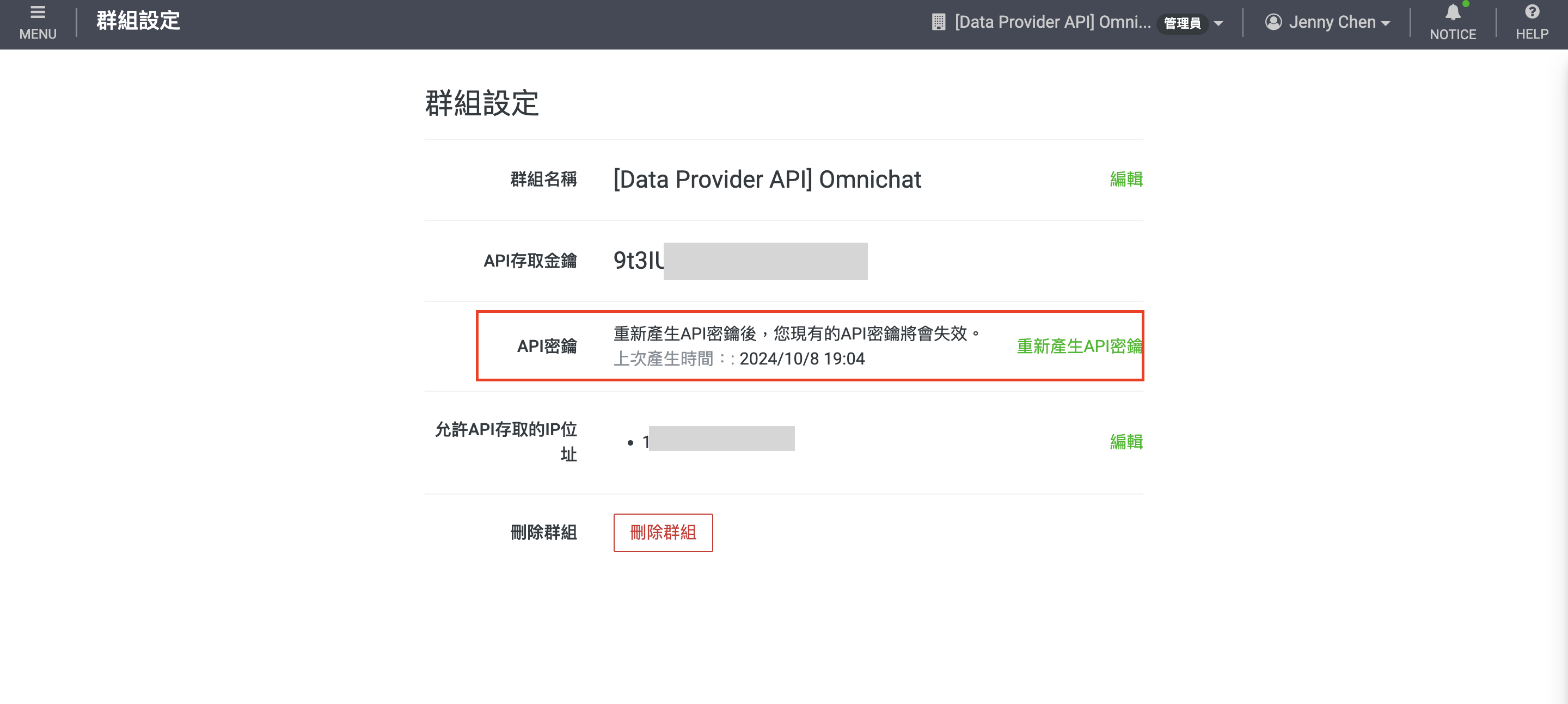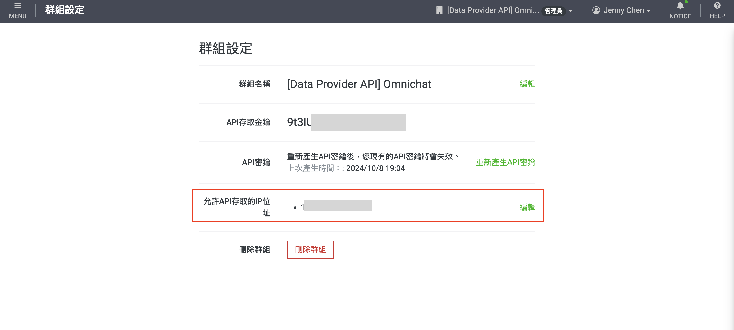 3. &#x20;回到 Omnichat 後台取得 Omnichat IP 後貼在"允許 API 存取的 IP 位址" 的欄位。