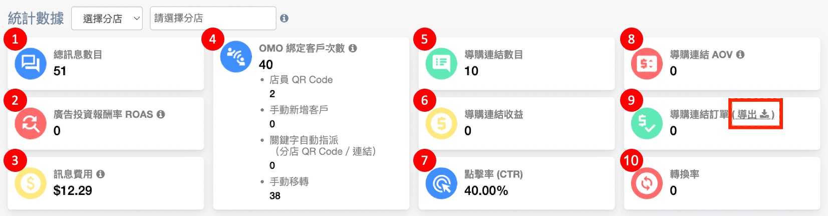 從 Omnichat 後台的業績統計查看即可,因為我們是以客服 ID 統計,不論有無點過導購連結以外的其他 UTM,只要 30 天內有帶來訂單,都會歸功給「導購連結功能」和「指定客服人員」