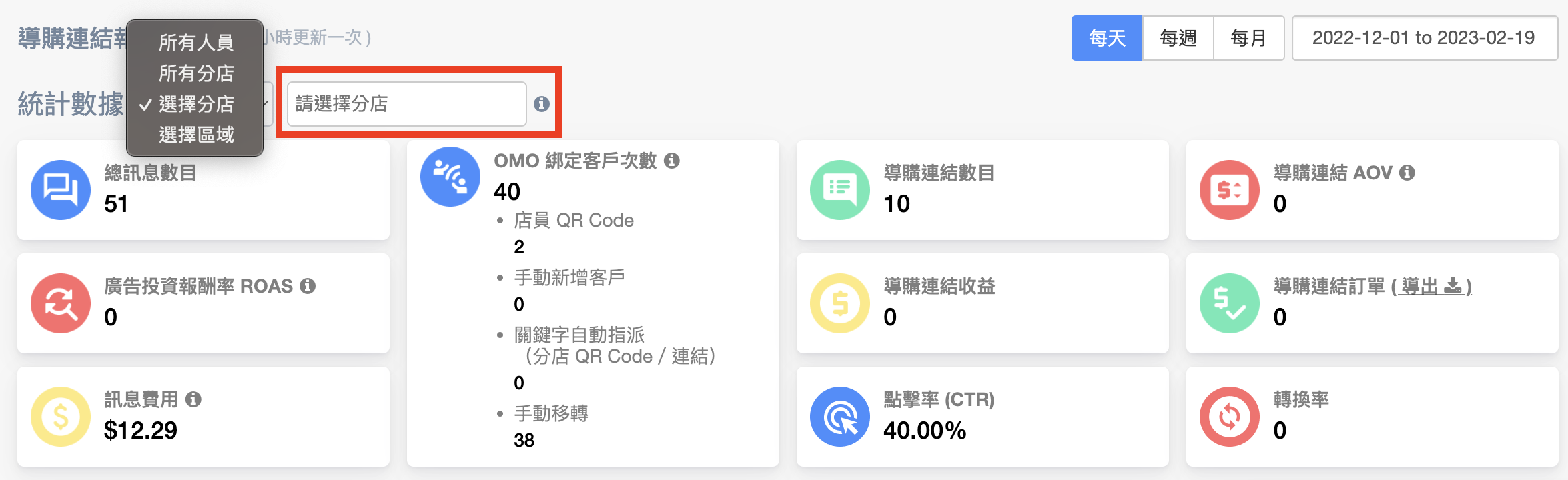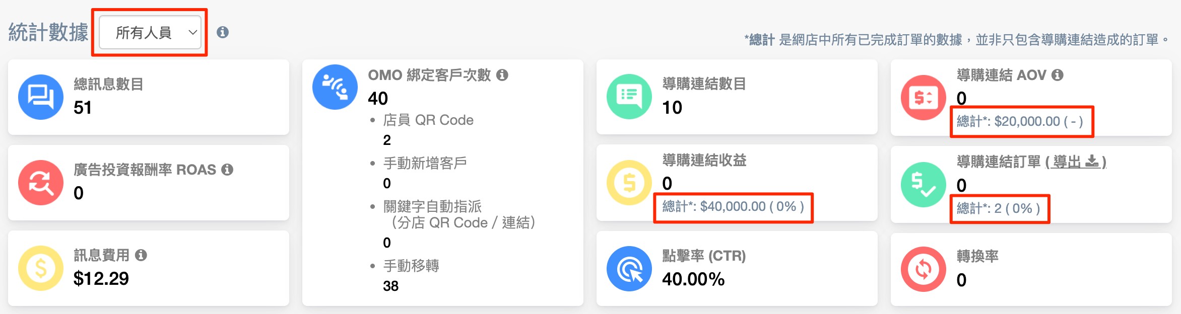 一進到導購連結頁面,會看到 所有門市業績(所有門市總計)