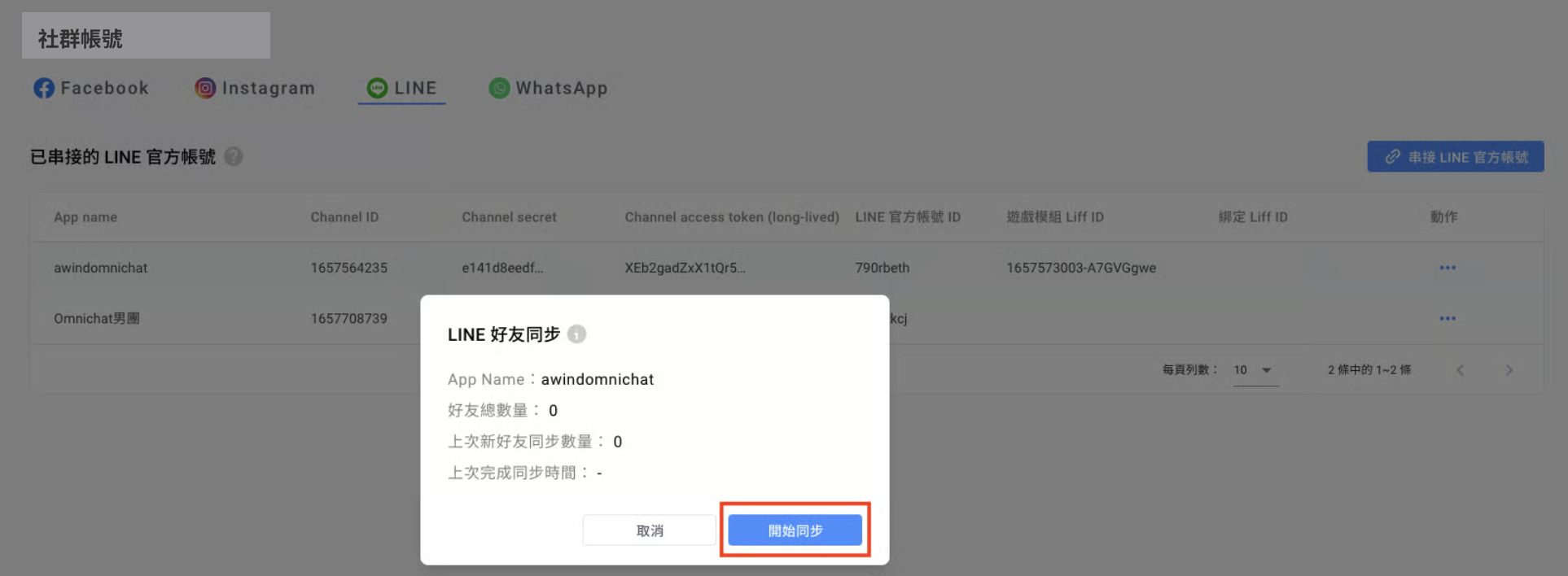 # LINE 帳號（藍盾以上）同步好友功能