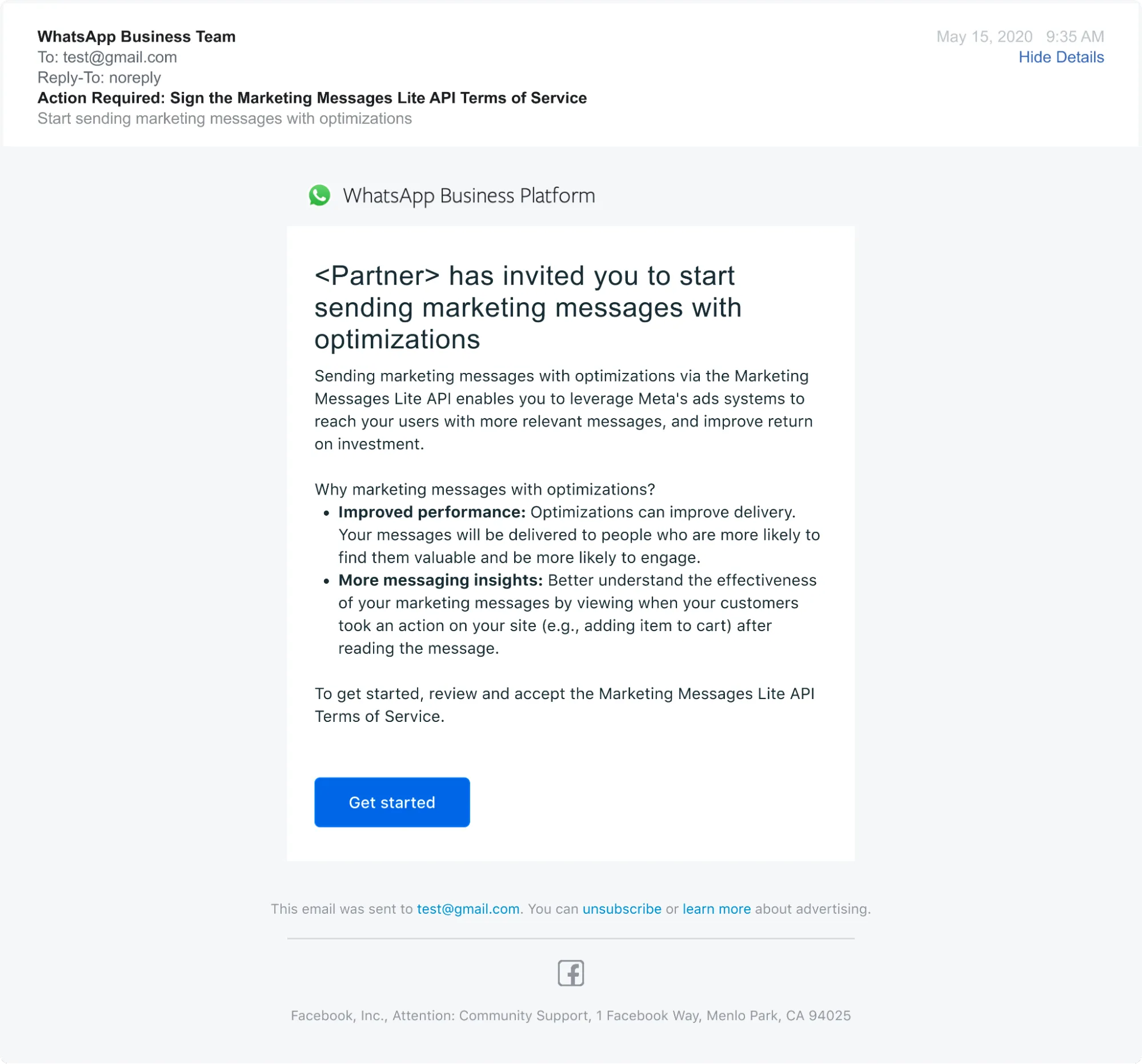 # 快速上手 WhatsApp Marketing Messages Lite API