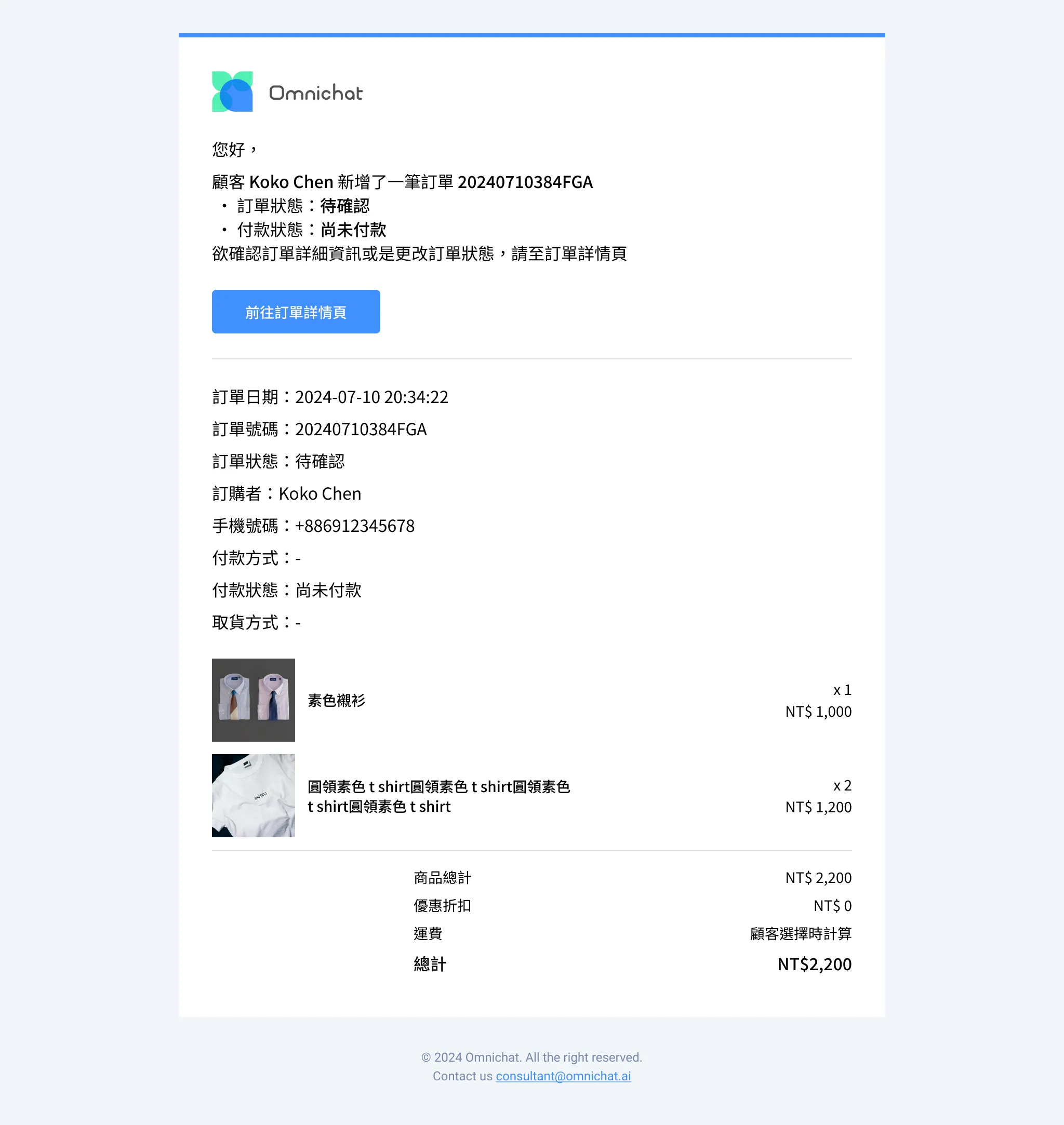 Email 訂單通知(顧客建立訂單、完成付款、訂單取消、訂單退貨)