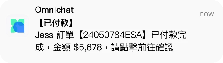 已付款狀態推播示意圖